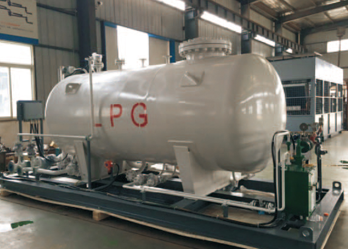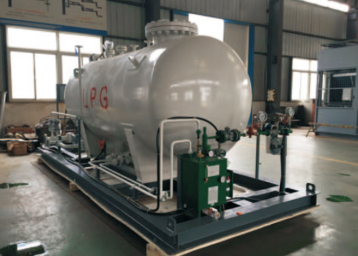 根據(jù)客戶需求,我公司設計了新型液化石油氣充裝存儲橇裝。 由鋼結(jié)構(gòu)底橇、 液化氣儲罐、 液化氣充裝泵、 液化氣汽化器、 安全閥、 液位計、 過濾器、 液位開關(guān)、 可燃氣體探測器、 控制箱、 流量計、 調(diào)壓閥、 手動閥門、 工藝管線、 復合軟管、 快速接頭所組成。 具有設計科學、 結(jié)構(gòu)簡單、 使用方便、 操作安全、 占地少可移動、 有利于環(huán)境保護等特點的—種新型液化氣充裝存儲與汽化裝置,它適用于小型液化氣鍋爐的燃料充裝儲存與汽化,是目前液化氣鍋爐房燃料供給的理想裝置。